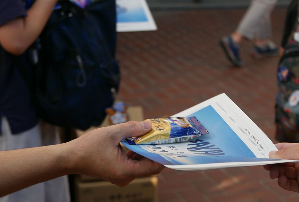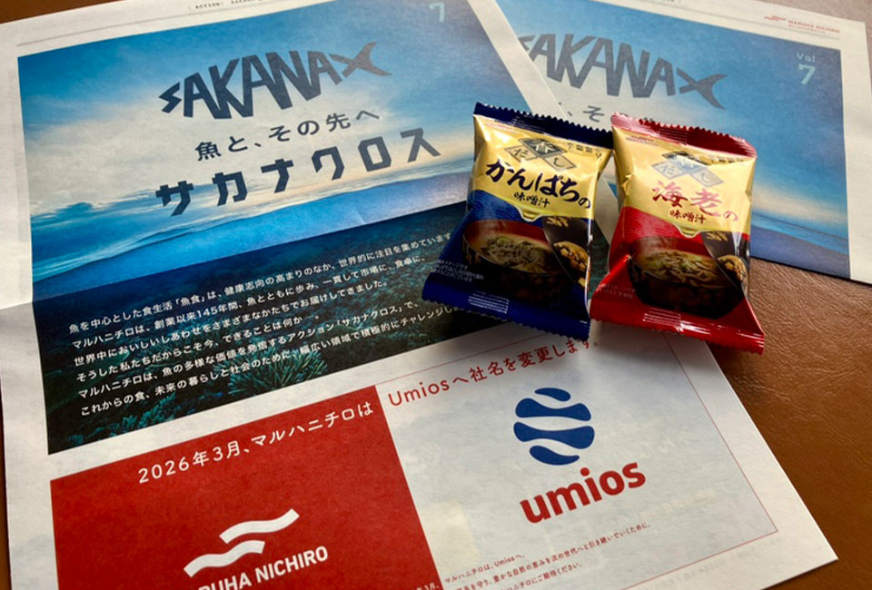 来場者の先着20,000名様には、サカナクロス タブロイド紙(Vol.7)と出汁にこだわった当社のフリーズドライ「香だし 海老の味噌汁」「香だし かんぱちの味噌汁」が配布されました。